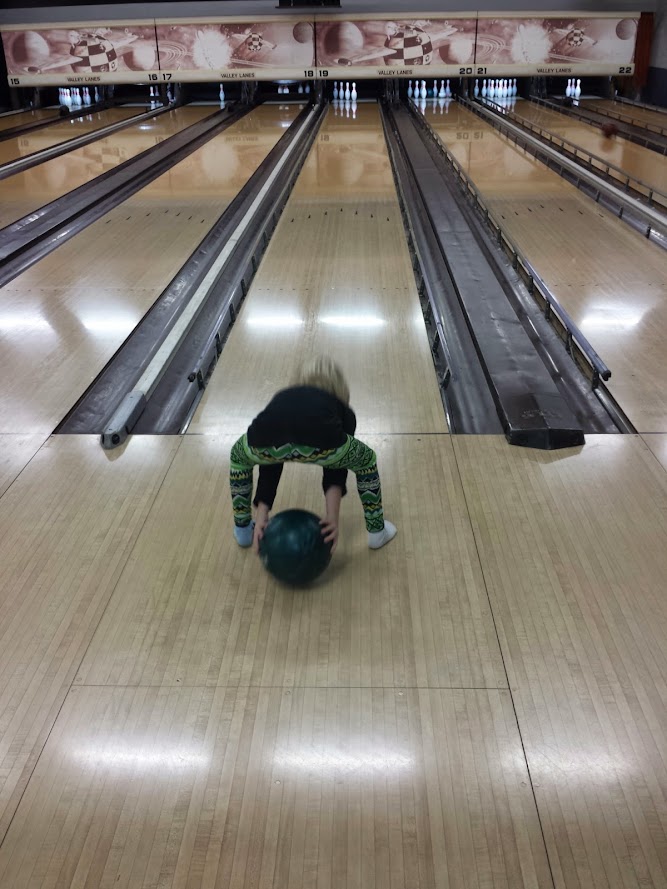 On Martin Luther King Day we decided to celebrate by taking the kids bowling. We considered ice skating, but then I though, "who are we kidding?" Bowling was much more likely to actually be fun. It was! We'd played 2 games. The balls rolled slowly. James and I had higher scores than normal thanks to the bumpers in the gutters (though we don't know what normal is since we don't remember the last time we went bowling). We ate greasy french fries and gooey cheese bread. It was a fun afternoon!